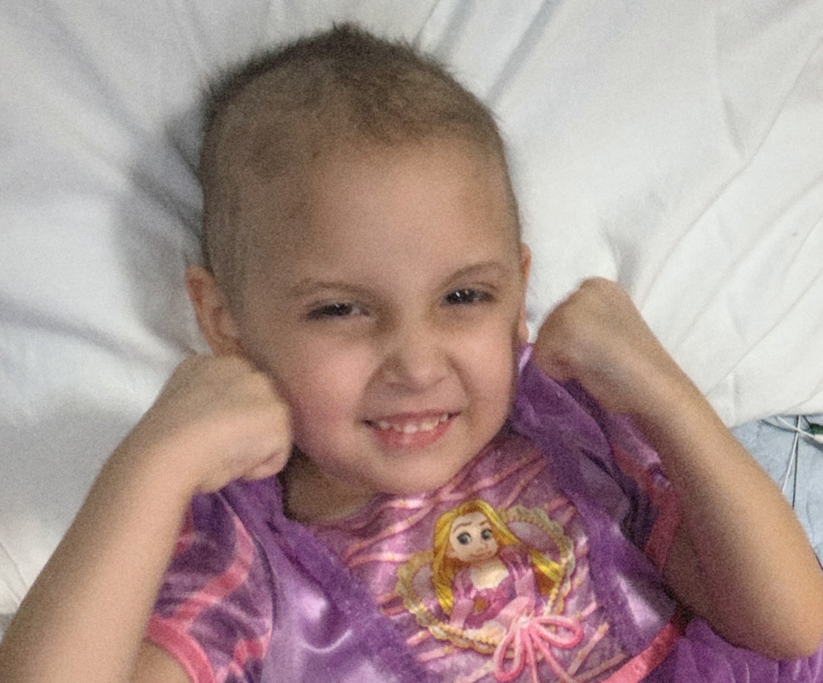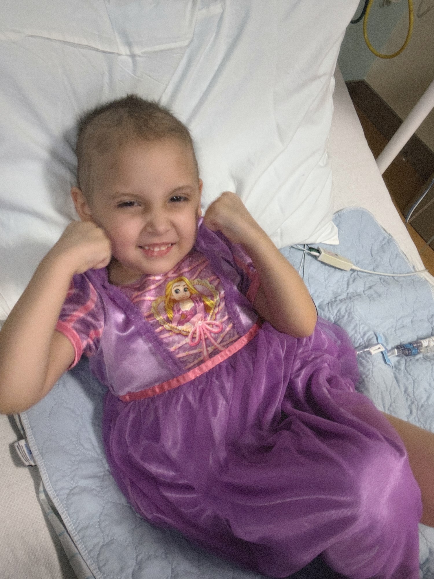 Finley is considered high risk because of her initial white blood cell count meaning more chemo, stronger doses, and immunotherapy. Finley has since had multiple spinal chemos, chemo infusions, chemo shots, and immunotherapy. She was hospitalized the majority of her first month of diagnosis due to fevers and other complications. She also had a severe anaphylactic reaction to one of the chemos so she now has to receive 6 shots per one dose of the chemo. Finley had to stop going to preschool due to her low immune system which she was not happy about. Unfortunately, her journey will be a long one, her finish line for treatment is roughly January 2028.